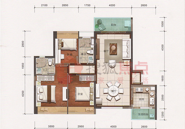客厅独立景观阳台,四季风光盛景相伴;客厅餐厅通风对流,清风阳光恣意流淌;房间配全景飘窗,厨房配生活阳台,惬意生活尽显品质;科学功能分区,方正布局,满足写意生活多方需求。