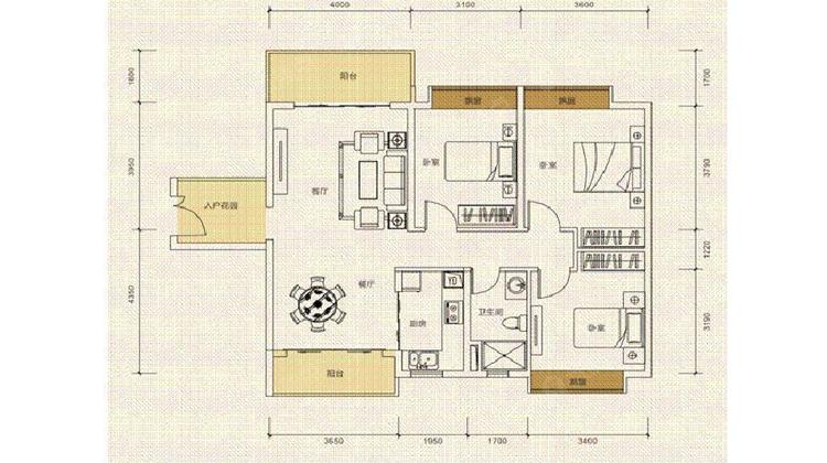 110平三房户型-3室2厅1卫-110.0m²(建面) 在售