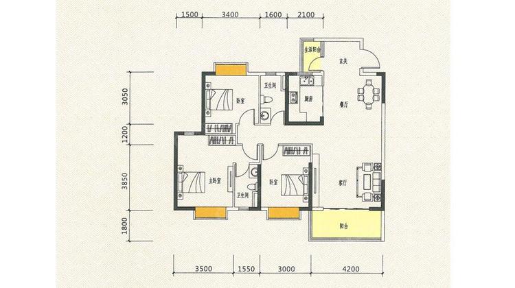 41号楼03户型-3室2厅2卫-123.0m²(建面) 在售