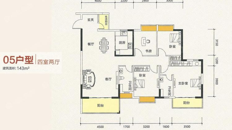 12号楼05户型-4室2厅2卫-143.0m²(建面) 在售