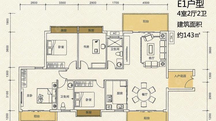 19号楼E1户型-4室2厅2卫-143.0m²(建面) 在售