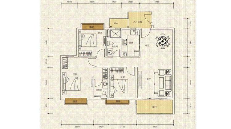 120平三房户型-3室2厅2卫-120.0m²(建面) 在售