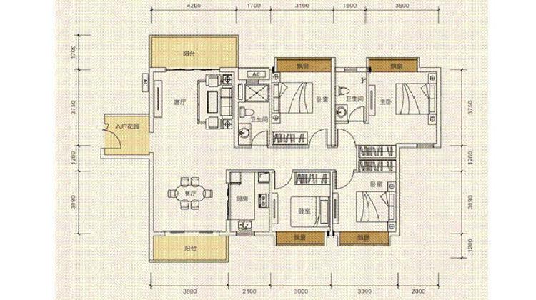 132平四房户型-4室2厅2卫-132.0m²(建面) 在售