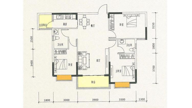 45号楼05户型-3室2厅2卫-113.0m²(建面) 在售
