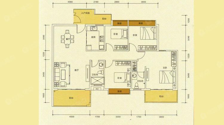 二期E2户型-4室2厅2卫-143.0m²(建面) 待售
