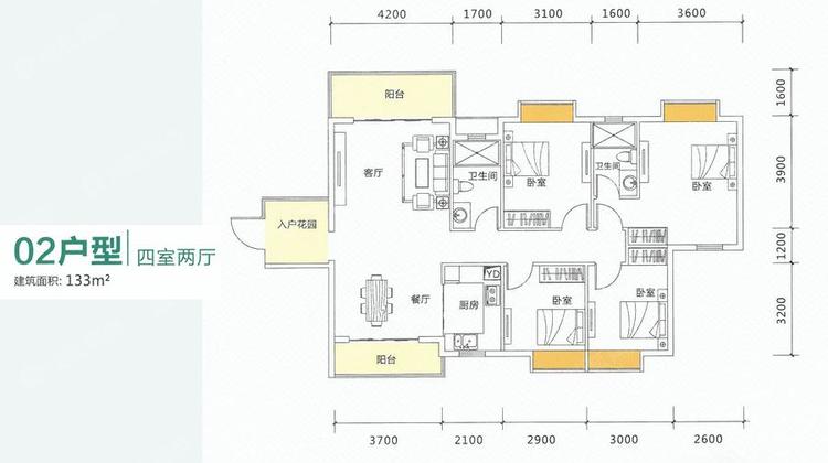 22号楼02户型-4室2厅2卫-133.0m²(建面) 在售