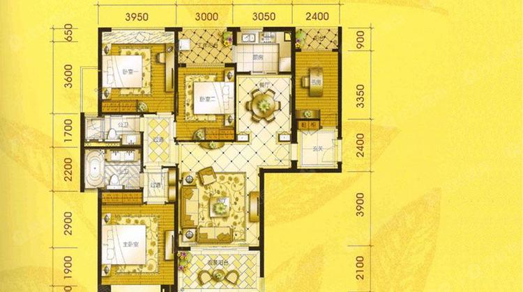 7幢04+05房标准层装修示范平面图 四房二厅二卫三阳台 建筑面积:147㎡ 套内面积:115㎡