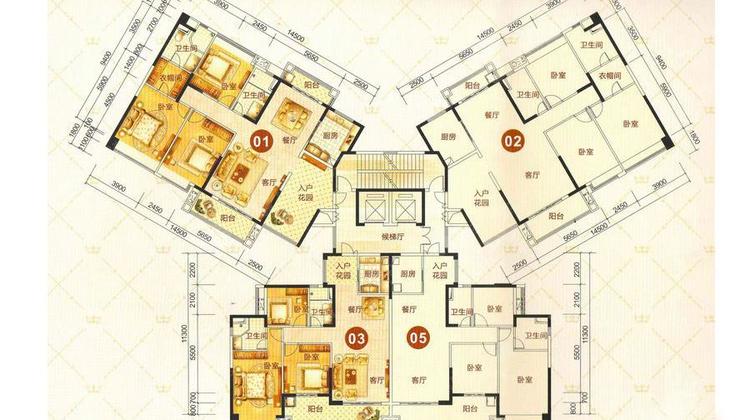 01/02户型:三房 161.93平 03/05户型房:三房 119.88平