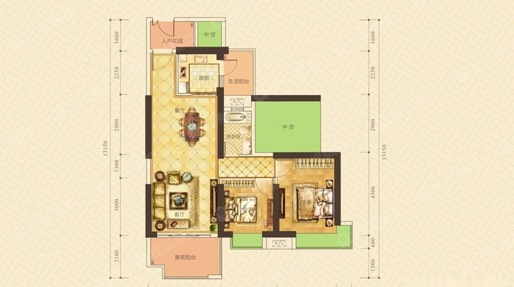 10号楼07户型二房二厅一卫建筑面积约:89㎡||