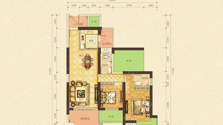 10号楼03户型二房二厅一卫建筑面积约:100㎡||