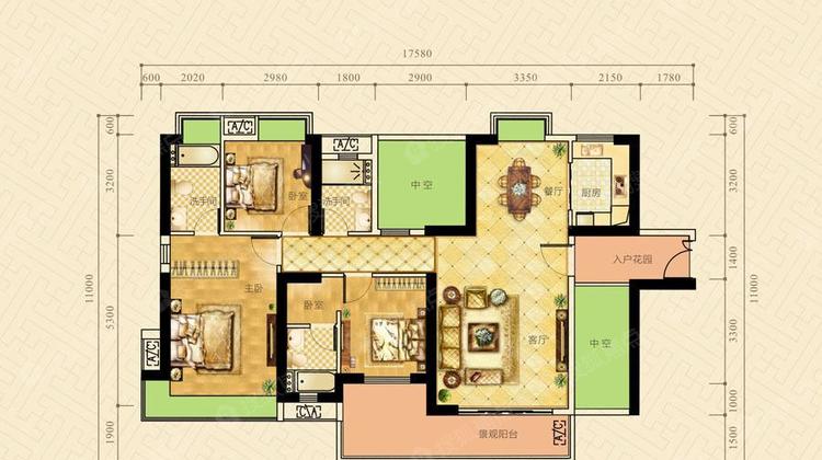 2号楼06户型三房二厅三卫建筑面积约:140㎡||