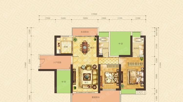 10号楼04户型二房二厅二卫建筑面积约:128㎡||