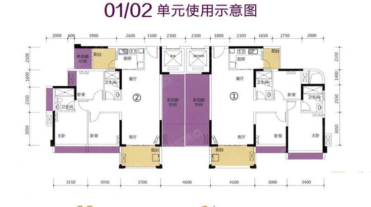 01单元户型:三房两厅两卫,建筑面积约112㎡,使用面积约113㎡ 02单元户型:三房两厅两卫,建筑面积约101㎡,使用面积约111㎡