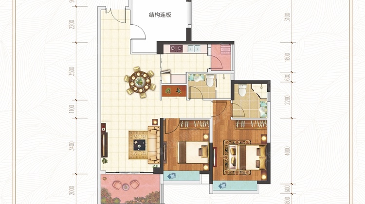 16#02户型-3室2厅2卫-107.47m²(建面) 在售