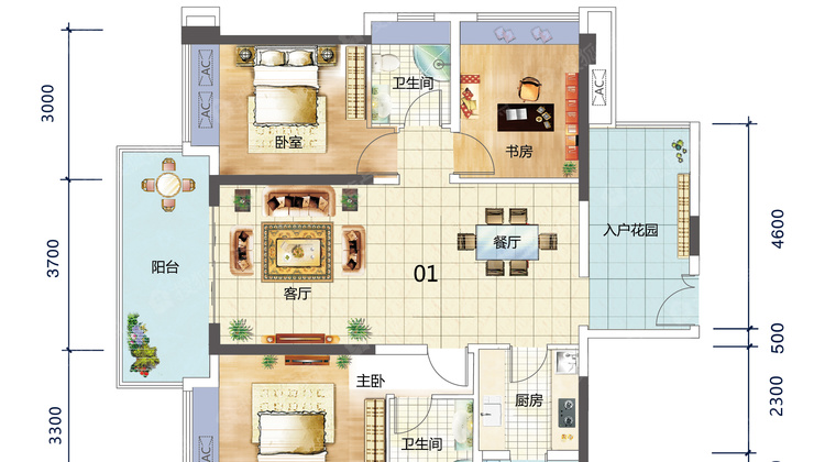 1012蓝海峰境-7栋01户型-4室2厅2卫-112.0m²(建面) 在售