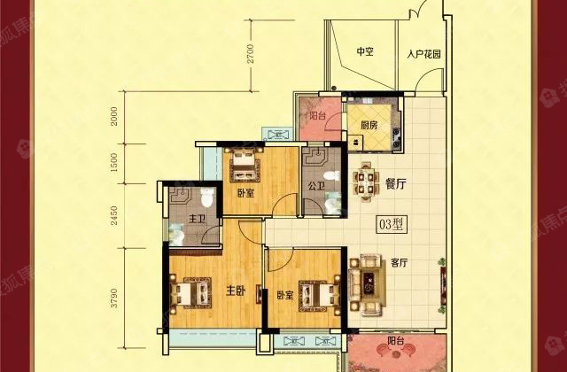 13栋 03户型-3室2厅2卫-106.0m²(建面) 待售