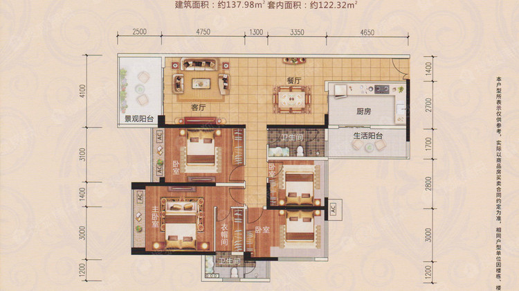 空间灵活多变,随心随意拥有自然生态式生活;主人房大套房设计,阔绰空间,尊享极致生活;宽敞客厅、阔绰餐厅。超大景观阳台一脉相通。