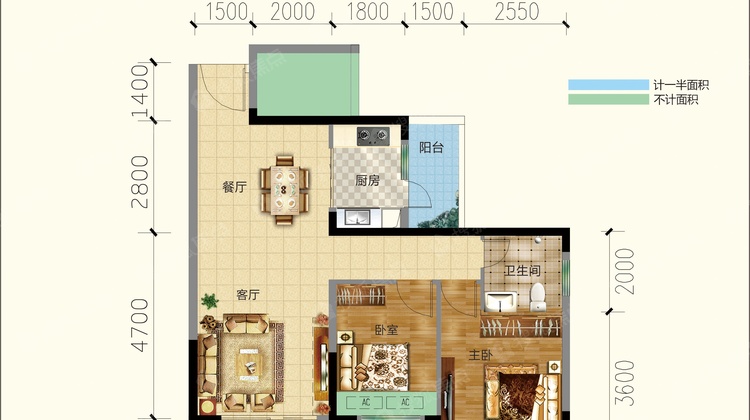 1号楼01户型、2号楼02户型-3室2厅1卫-85.0m²(建面) 在售