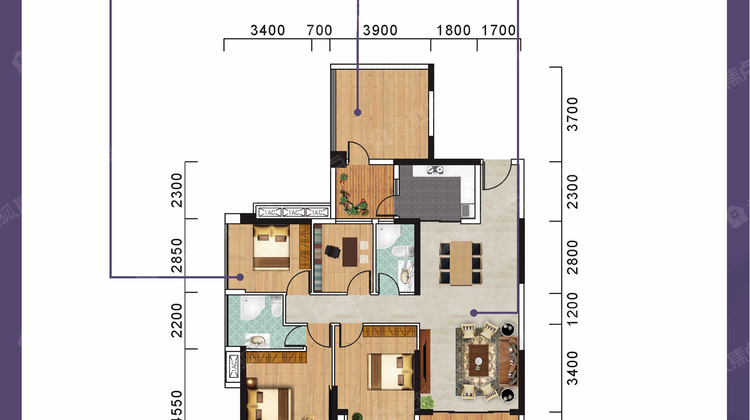 2号楼02户型-4室2厅2卫-117.0m²(建面) 待售
