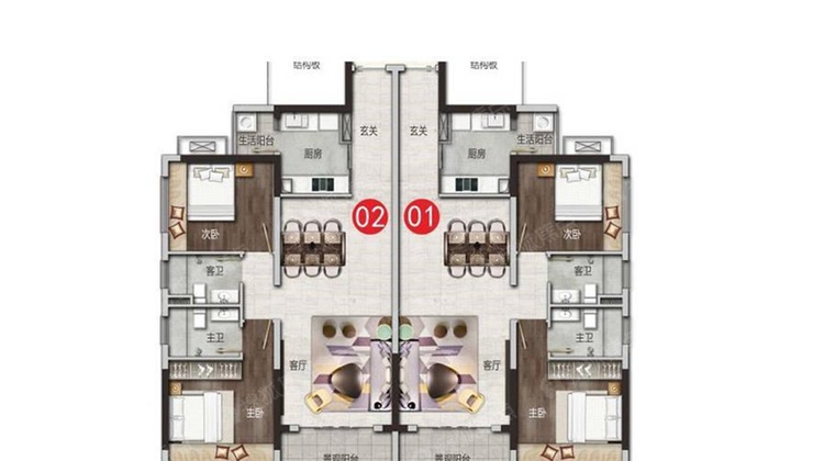 1栋0102-3室2厅2卫-95.0m²(建面) 待售