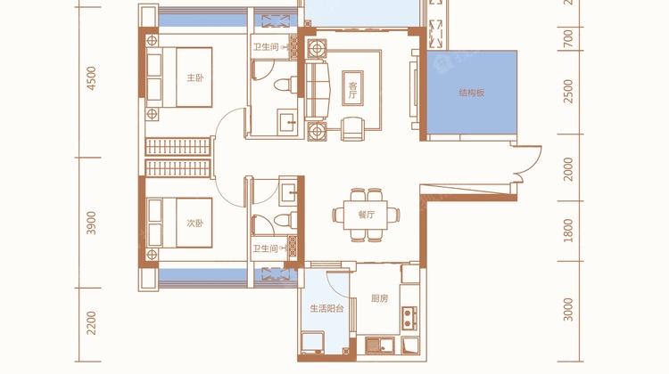 2室2厅2卫-88m²(建面)