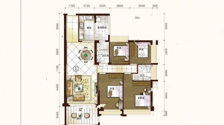 9栋2梯01户型-4室2厅2卫-145.0m²(建面) 在售