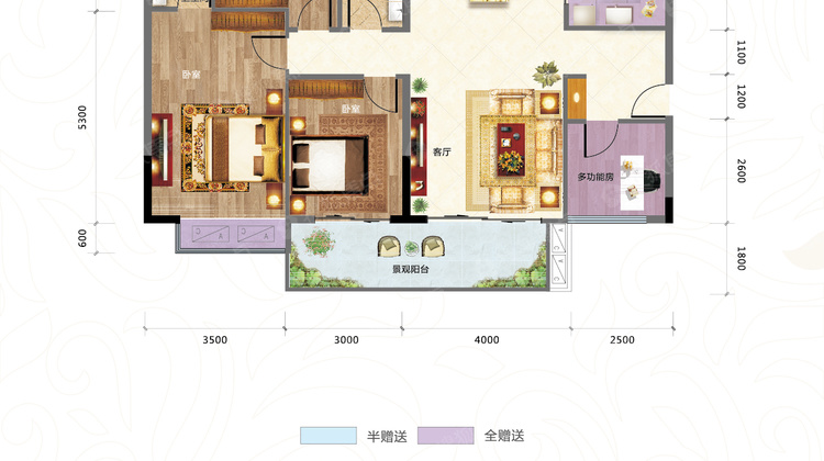 3+1户型,空间灵动,随心创新设计 超大景观阳台,南北对流,视野开阔 主卧独立套间,奢享私卫,独享个人空间