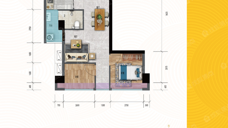 2室2厅1卫 (5号楼06/07户型)