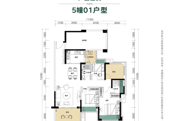 户型布局方正合理,南向采光,开间通透;使用三房经典设计,通风透风透气条件优越。