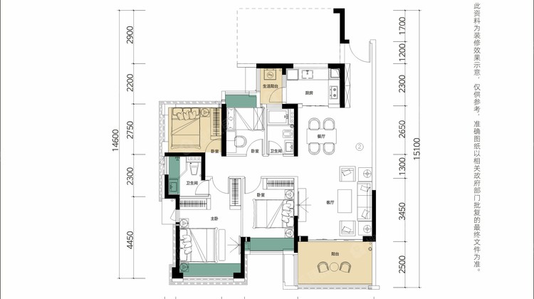 灵动三房创意空间,功能布局随心分区,动静分区明晰,通风采光条件优越
