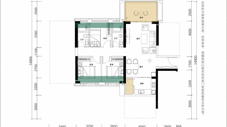 实用三房经典设计,高拓创意空间随心布置,动静分区明晰,通风采光条件优越