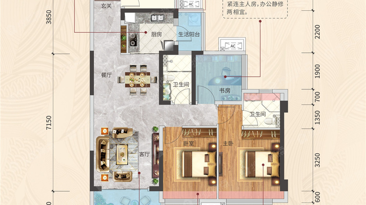 2室2厅2卫 (2+2房2厅2卫)