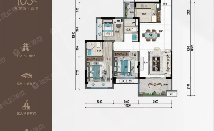 B1户型-3室2厅2卫-103.0m²(建面) 在售