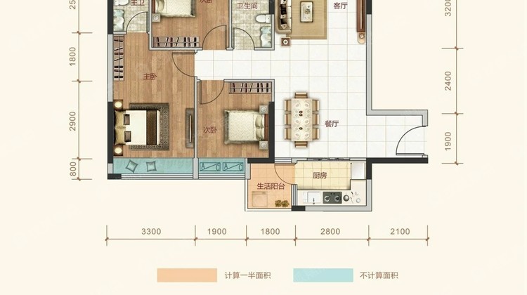 户型方正通透,尽享阳光生活;厨房紧邻餐厅,美味生活加速传递