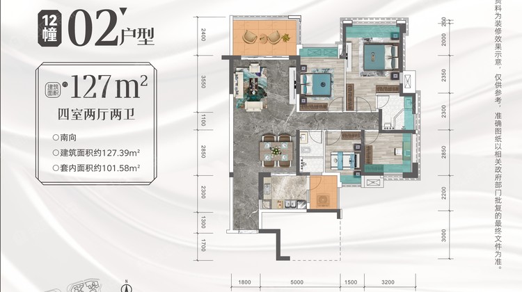 12号楼02户型-4室2厅2卫-127.0m²(建面) 待售