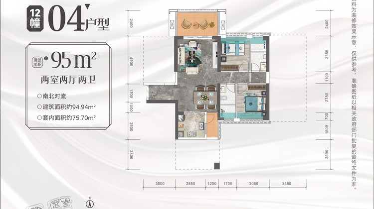 12号楼04户型-2室2厅2卫-95.0m²(建面) 待售