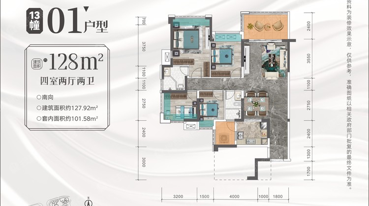 13号楼01户型-4室2厅2卫-128.0m²(建面) 待售