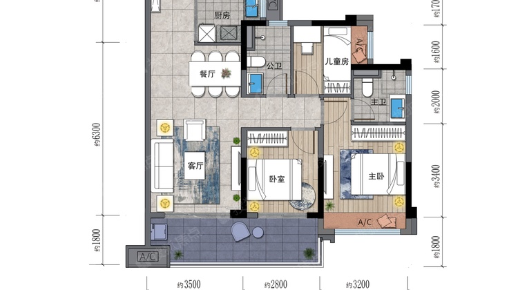 空间方正,宽阔一体式客餐厅;奢阔瞰景阳台,尽揽四时盛景;U型厨房设计,功能分区合理;干湿分区,日常使用健康舒适;次卧与景观阳台相连,清风阳光入怀;套房式主卧配赏景飘窗,为您提供舒适从容的休憩空间。