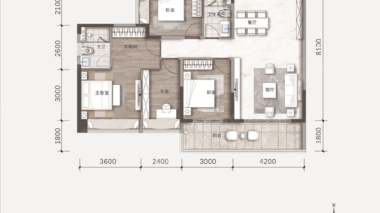 双厅相连,独立书房,约7.2米阔景阳台,豪华主卧套间,三房全飘窗