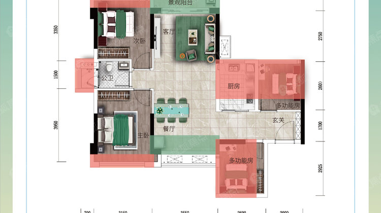 全明格局 餐客分离 观景落地窗