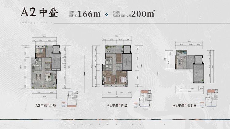 A2中叠别墅户型,楼层为3层、4层、地下室