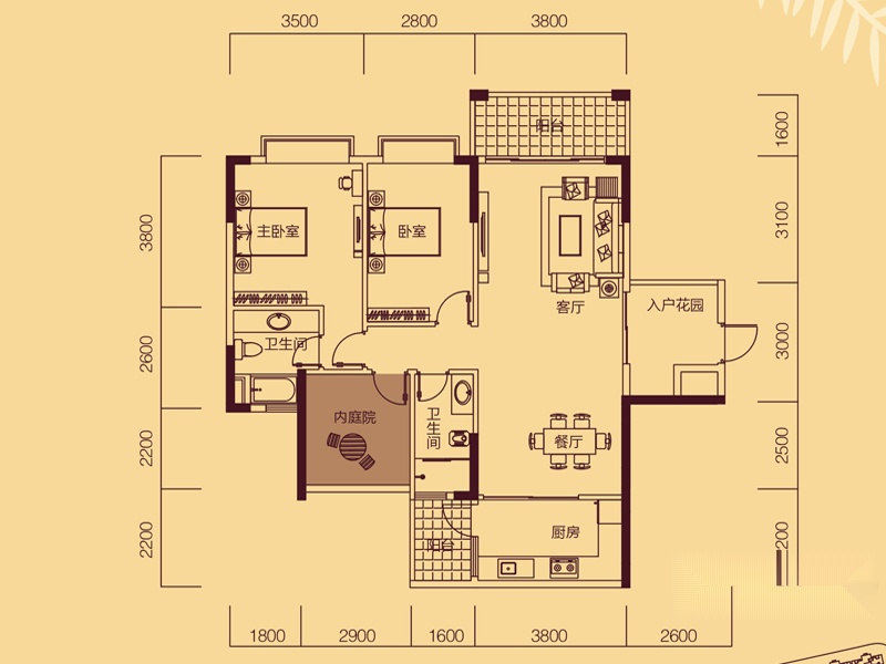 2室2厅2卫-D4/D5/D6/D7/E1座04户型