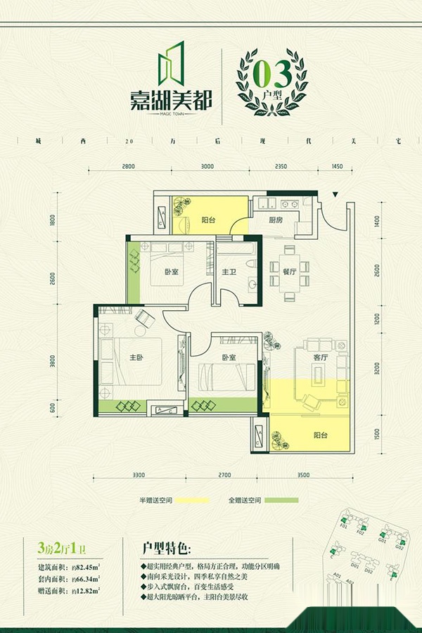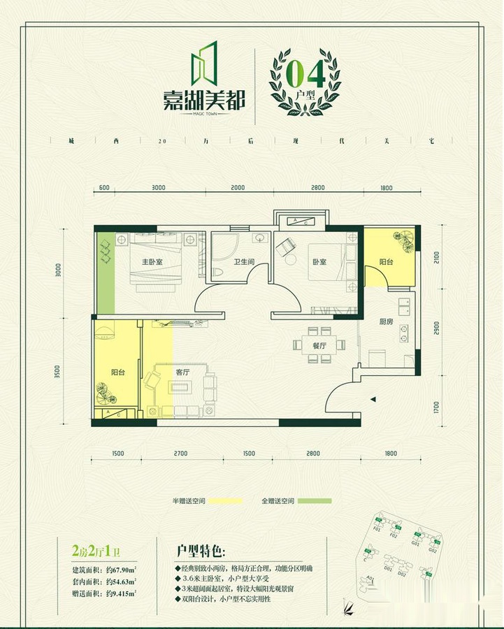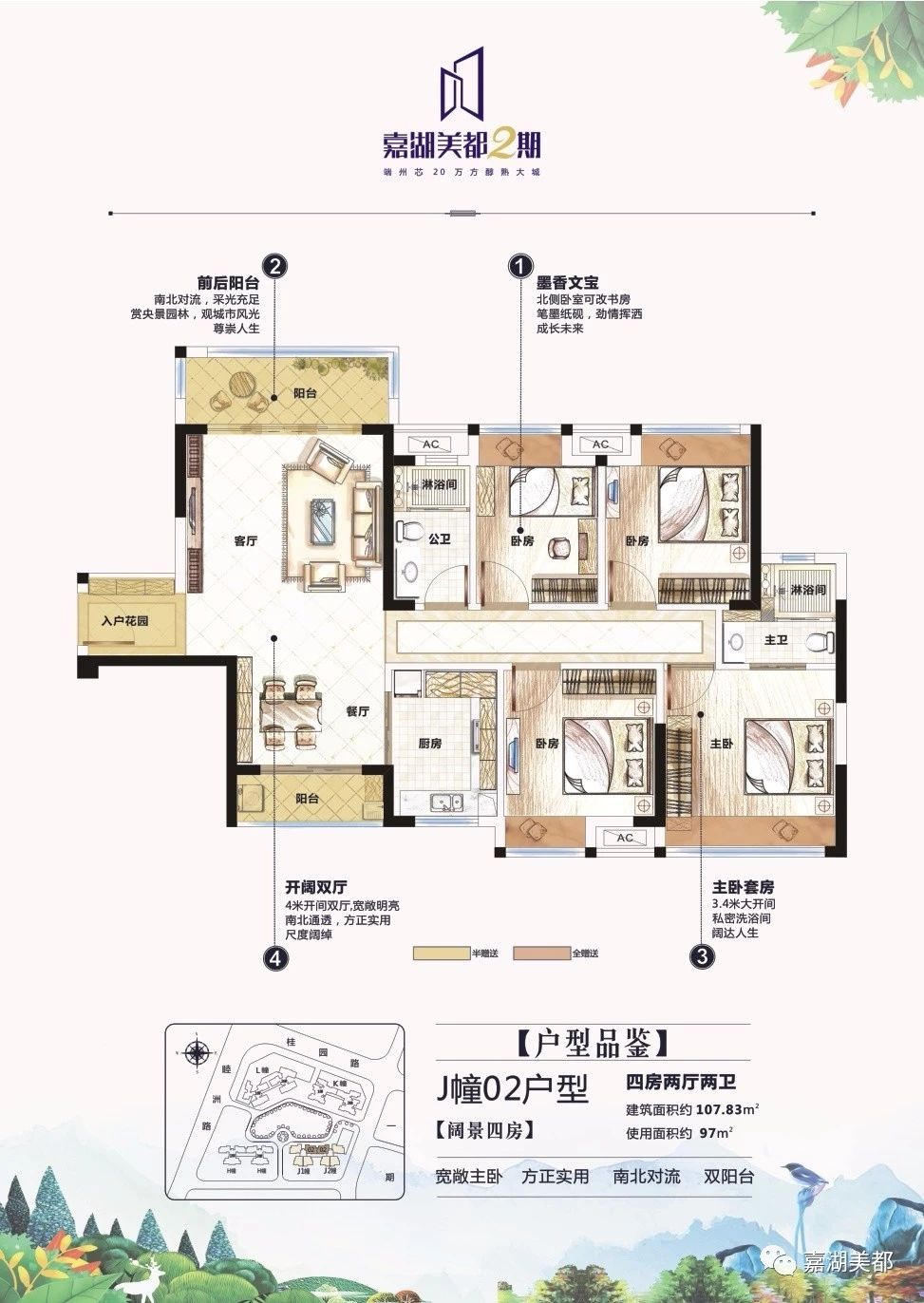 在售 观景落地窗 厨卫不对门 户型方正 双阳台