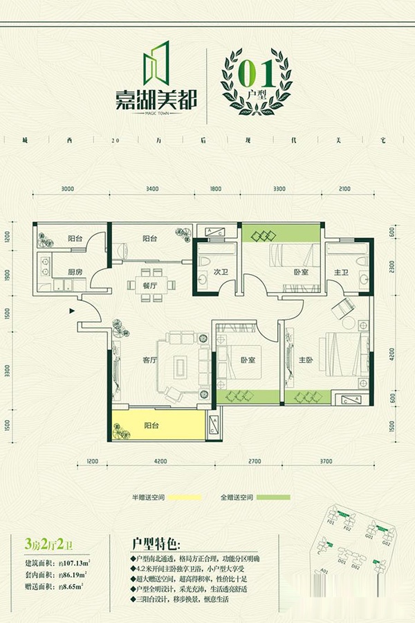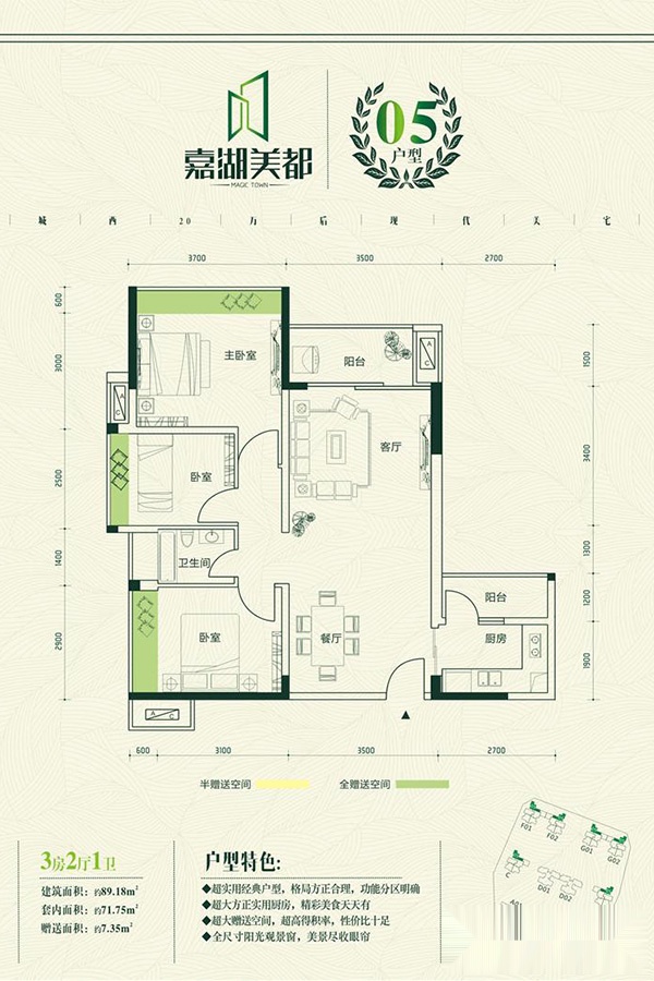 在售 观景落地窗 主卧带卫 厨卫不对门 户型方正 全明格局 双阳台 卧室带阳台