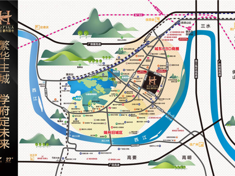 城市干道:信安路、星湖大道、端州路、肇庆大道