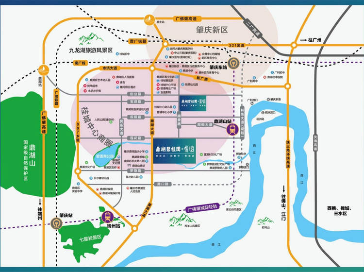 周边公共交通:广佛肇城际铁路鼎湖山站、鼎湖区桂城客运站