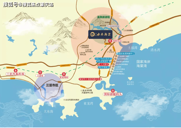 驾车:直线离三亚凤凰机场 35 公里,直线距离三亚高铁站 27 公里、直线距离亚龙湾站 17 公里,直线距离 2.4 公里可达海南环线高速主干道。