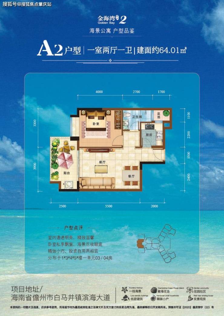 在海南限购政策前规划获批的低于100平米的稀缺小户型,设计精巧,明厨明卫,1.8米超宽大阳台,141米超宽楼间距。