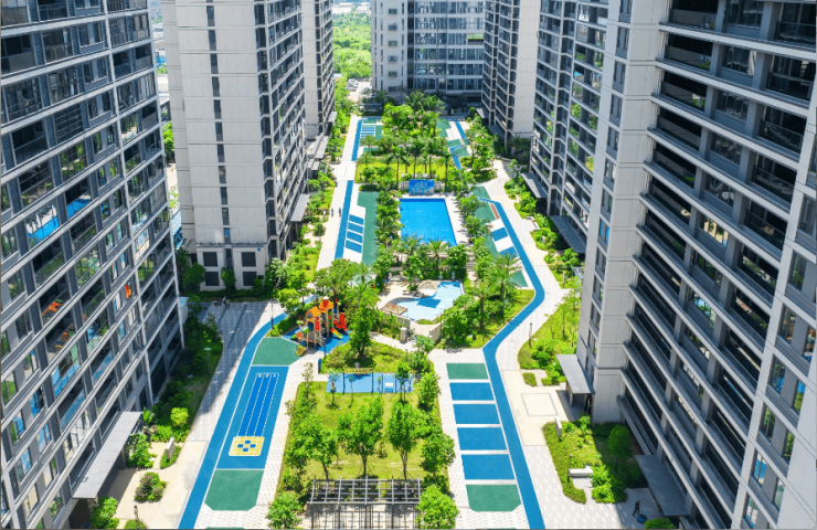 以热带园林点缀归家动线,并形成开阔的公共活动场域,为邻里活动提供高质量社交空间;