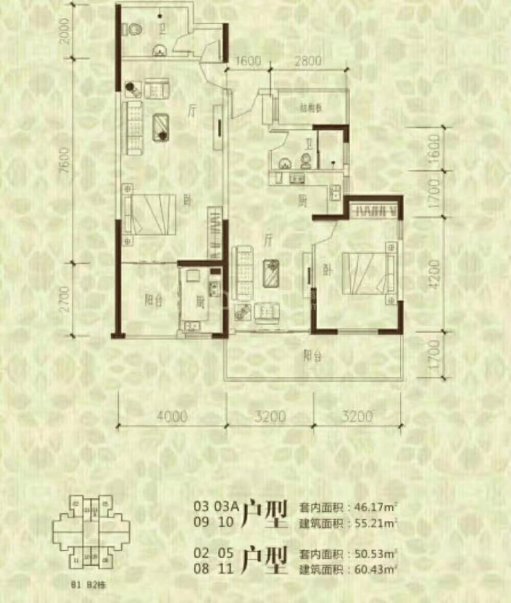 55㎡-60㎡一房、131㎡三房